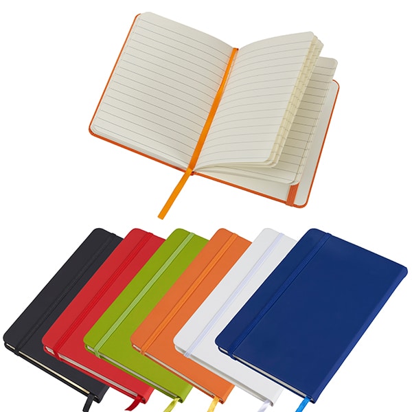 מחברת 96 דף, כריכת PU קשיחה עם סימנייה מידות: 21×14 ס"מ צבעים: כתום / כחול / אדום / שחור / לבן