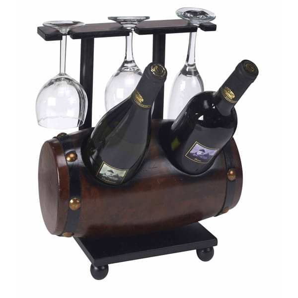 בר יין חבית שוכבת ל-2 בקבוקים ו-3 כוסות