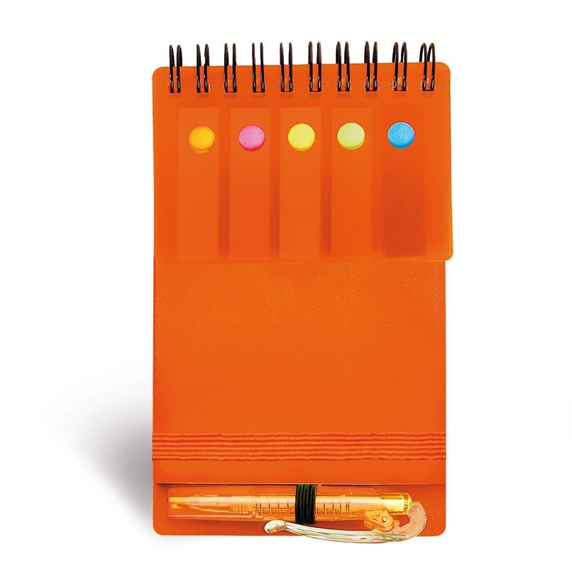 פנקס ממוחזר כולל ניירות דביקים +עט מתקפל