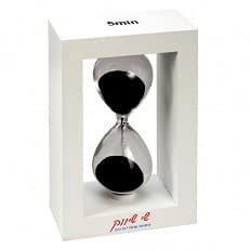 שעון חול מסגרת עץ לבנה – קטן , גובה 11 ס"מ